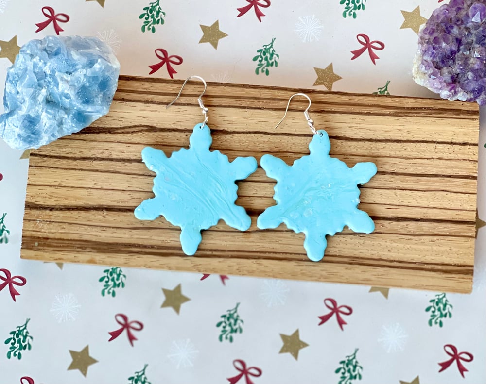 To get this fun style/pattern I put gold foil on top of the clay then pressed snowflake stamps down and used tape to remove the foil from the clay leaving only the stamped parts with gold.
