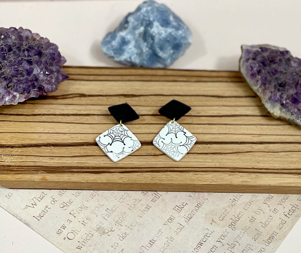Spooky Season is here so add a bit of webbing to your life with this collection. The webs are stamped on leaving an impression to give detail. These are the diamond pair, the others are heart dangles, dino studs, mickey ear dangles and a regular pair of studs.